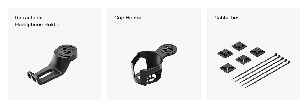 โต๊ะรุ่น Xtreme Series มาพร้อมอุปกรณ์ที่พร้อมใช้งานได้ทันทีตั้งแต่แกะกล่อง โดยมีทั้งที่แขวนหูฟังแบบพับเก็บได้ ที่วางแก้วน้ำ และชุดสายรัดแบบล็อกในตัว 5 เส้น เพื่อช่วยจัดระเบียบพื้นที่ใช้งานของคุณ สำหรับอุปกรณ์เสริมอื่น ๆ เช่น แผ่นรองโต๊ะขนาดเต็มพื้นที่ (Full-size Desk Mat), แท่นวางจอ (Desk Riser) และแขนจับจอมอนิเตอร์ (Monitor Arms) จะมีการเปิดตัวและพร้อมวางจำหน่ายในเร็ว ๆ นี้